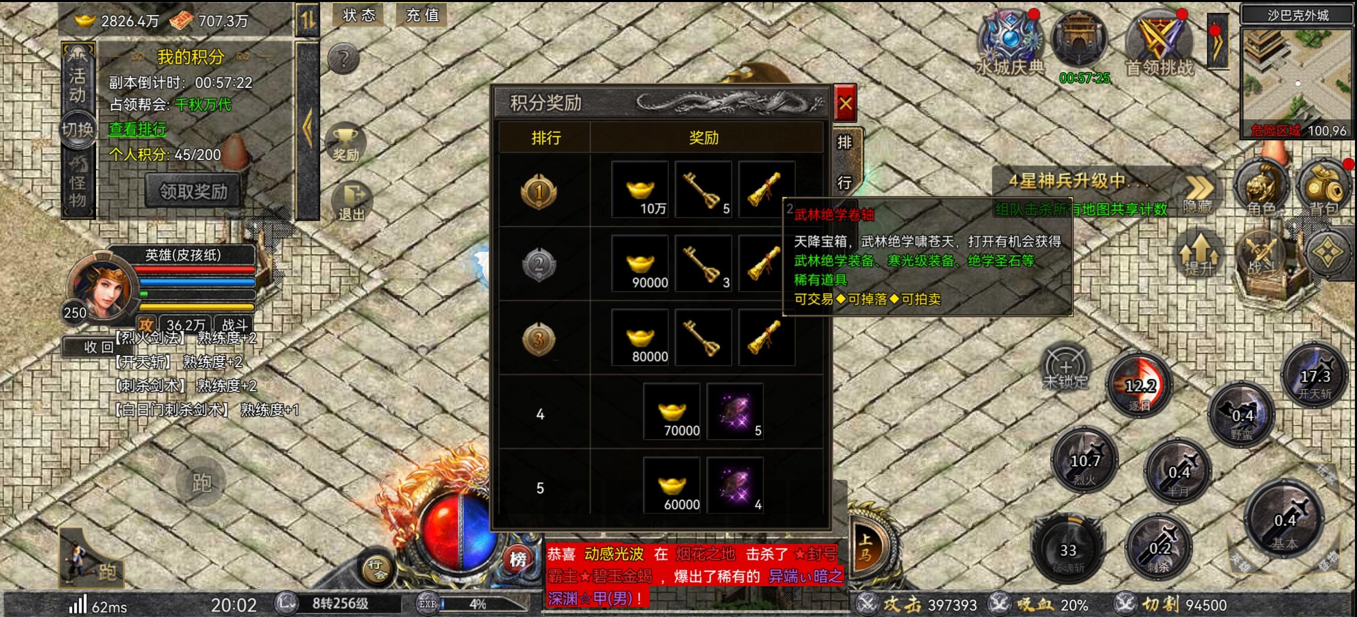 3、开服/合服首次沙城争霸活动无守城方。其他时间守城方为霸主行会,攻城方为其他行会