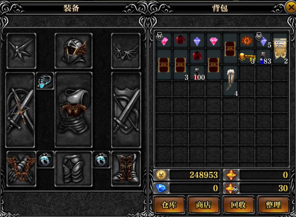 装备:武器、头盔、铠甲、护手、护腿、靴子、首饰、守护、坐骑;