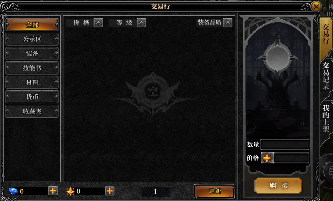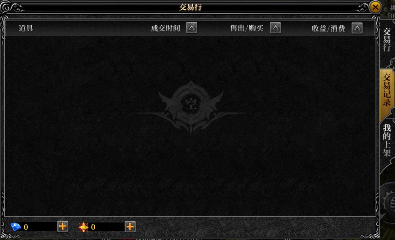 交易行主要分为三个部分:购买(交易行)、出售(我的上架)及交易记录,分别对应不同的界面。
