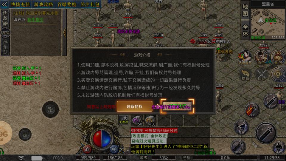 2、选择副本开启刷怪扫荡,刀刀暴击,超高爆率,一键拾取全屏装备,自动回收,获得元宝;