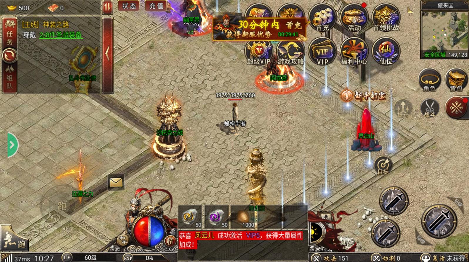 5、刷怪爆装极其的畅爽,红名敌人杀人就会爆装,随意的搭配自己的装备,不断的提升自己的实力,收集各种的神器装备,让你可以更好的提升战力。