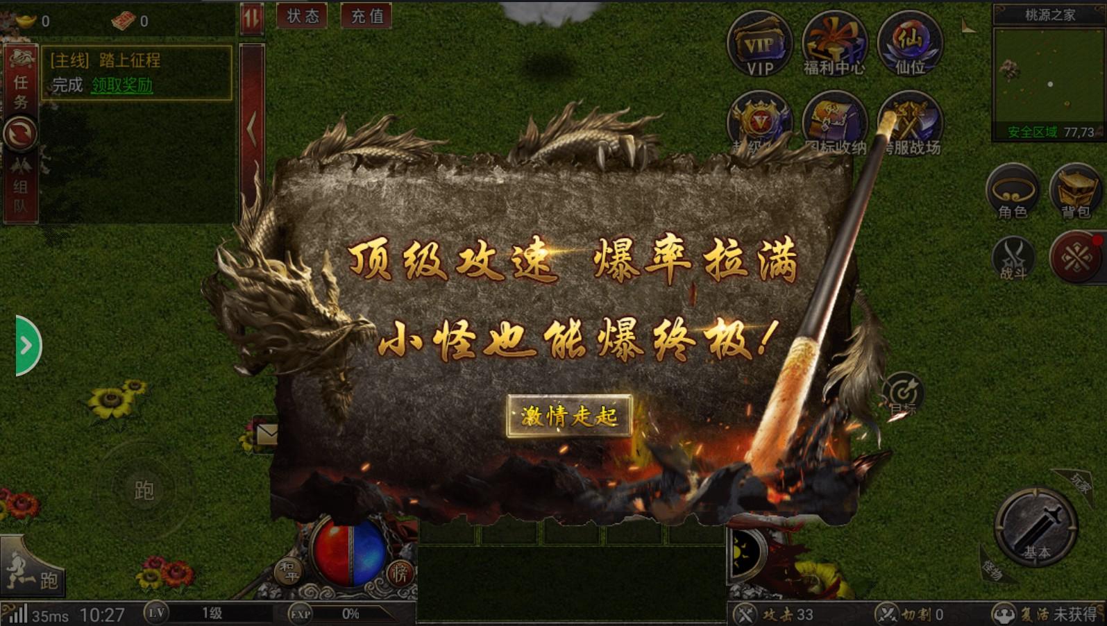 1、挂机也能快速升级,登录自动做任务。