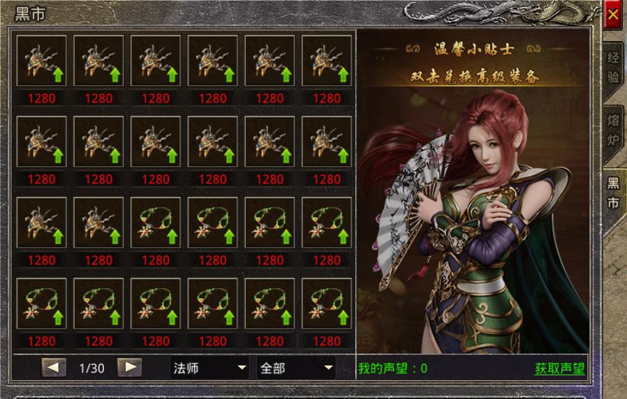 4、在黑市通关声望值来兑换自己需要的装备,声望值可以通过熔炉去熔掉一些自己不需要的装备来获得。