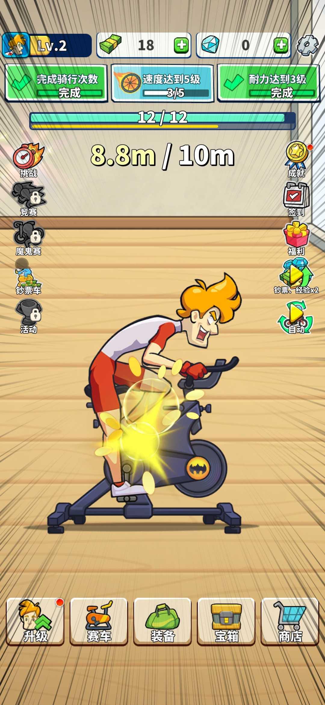2.无比欢乐的游戏过程,参与自行车竞速冒险,获取资源;