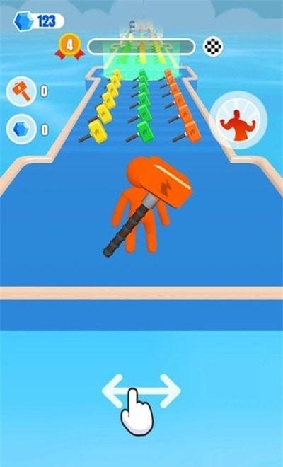 3.玩家需要非常注意各种障碍,尽量收集和自己一样颜色的锤子,可以解决更多的危险。