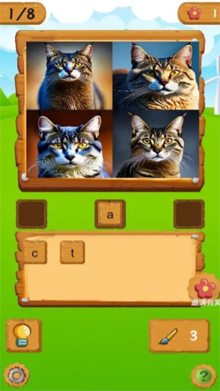 ai拼才会英手游这是一款基于AI技术生成图片的猜词游戏。玩家需要根据AI生成的图片,来猜测图片背后所代表的单词。这个游戏可以帮助玩家学习英语单词,提高英语水平,游戏结合了当下流行的智能ai的元素,让体验不一样的拼图玩法。