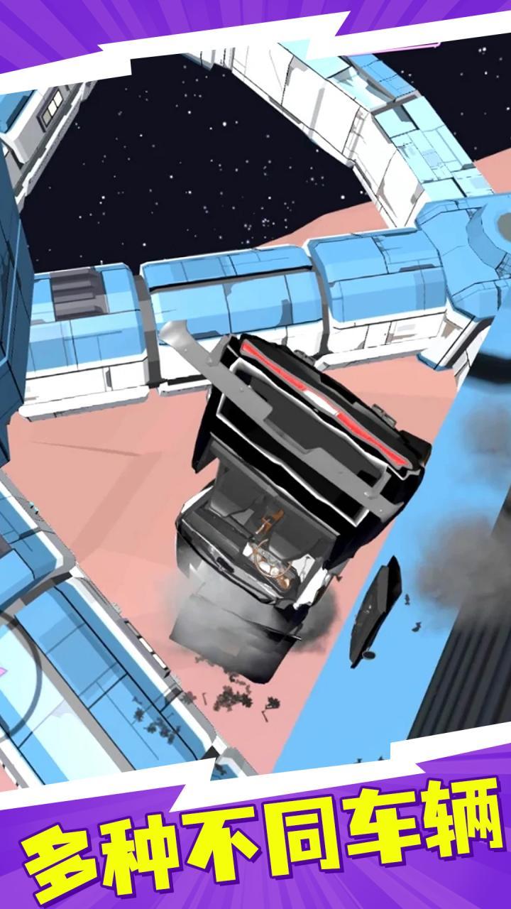 3、驾驶造型非常炫酷的汽车,在指定星球场景中不断撞击太空战舰、宇宙飞船等。
