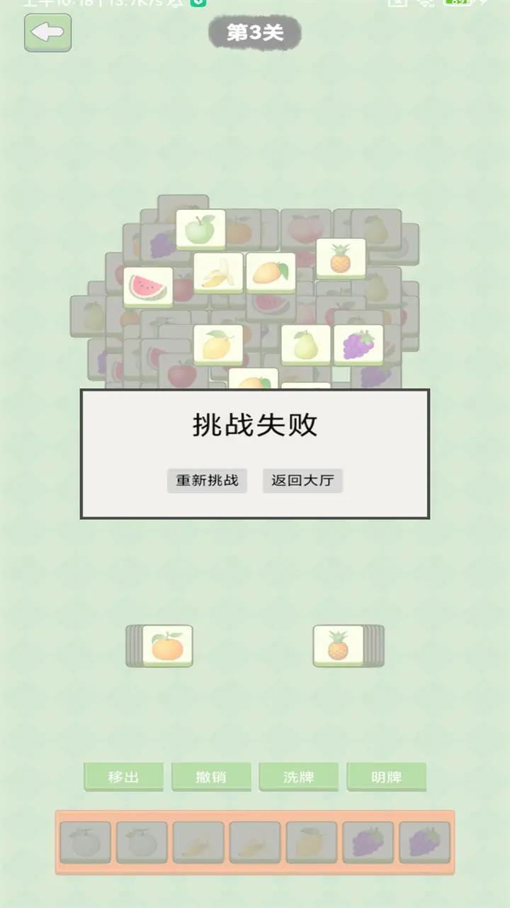 《你行你上啊》是一款休闲卡牌消除游戏,玩法类似于前段时间爆火的《羊了个羊》,玩家需要收集相同的卡牌并消除,同时需要慎重选择操作以避免卡槽满而失败,游戏提供多种不同的玩法。
