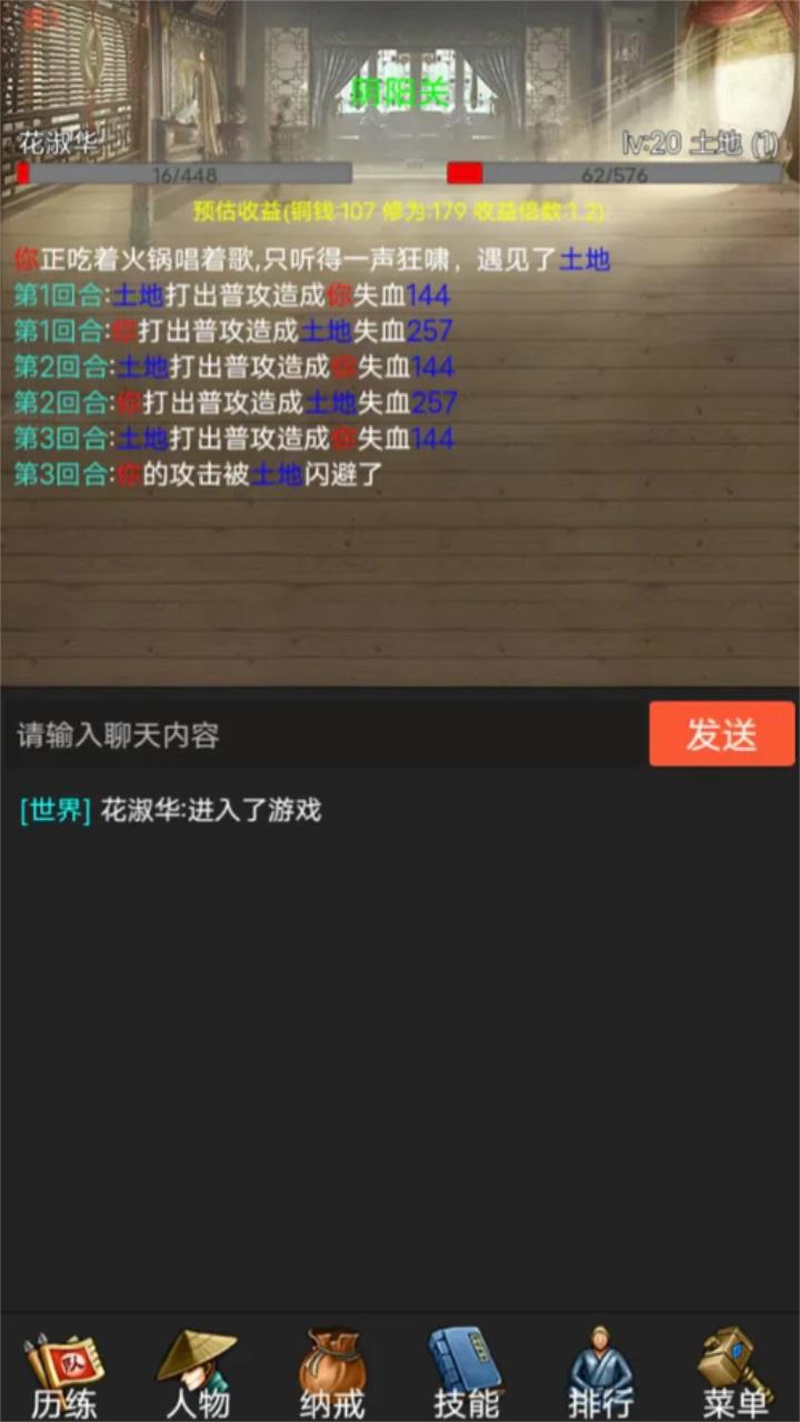 除了基本的门派功法之外,游戏也存在生存属性,例如食物,饮水等等这些维持生命所必须要的基本属性。也就是说这这款游戏内我们不仅需要努力提升自己,实现目标同时还需要注意自己的生理需求。也鉴于游戏虽然是一个文字游戏,但内容之丰富,题材之经典,会让这款游戏玩家呈两个趋势,喜欢和不喜欢,玩的明白和玩不明白。短短体验了一下才发现前完全摸透这个游戏确实非常的困难,如果单靠自己的话带来的体验真的不是很好,而这也就是这款游戏缺点所在,因为不是所有人都喜欢和人打交道,不愿意和人交流,但自己确实琢磨不透这款游戏,那极大可能会放弃它。