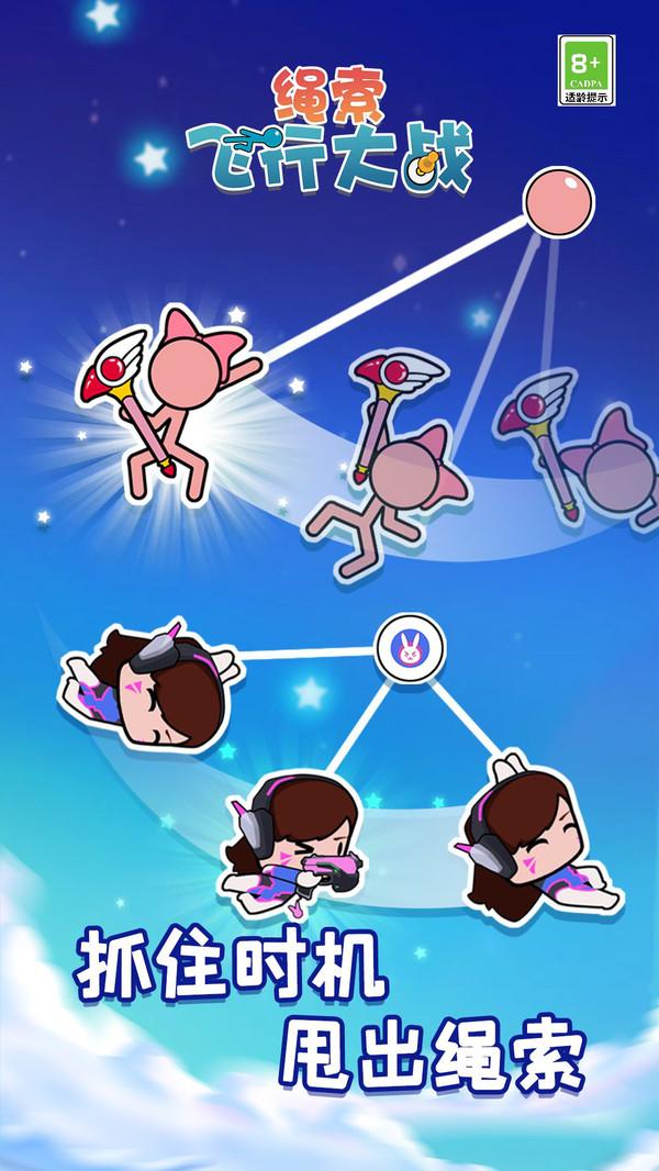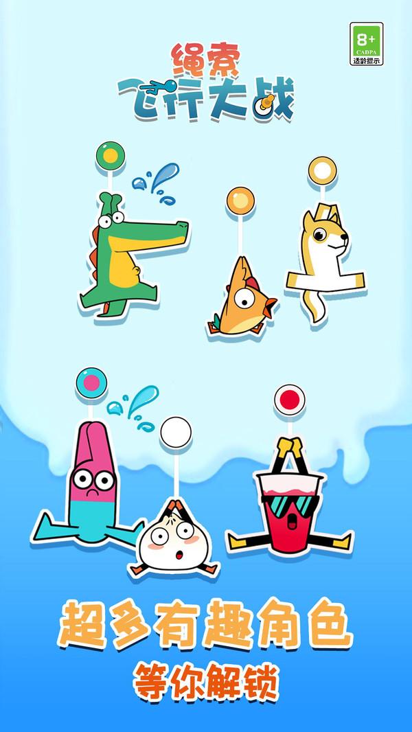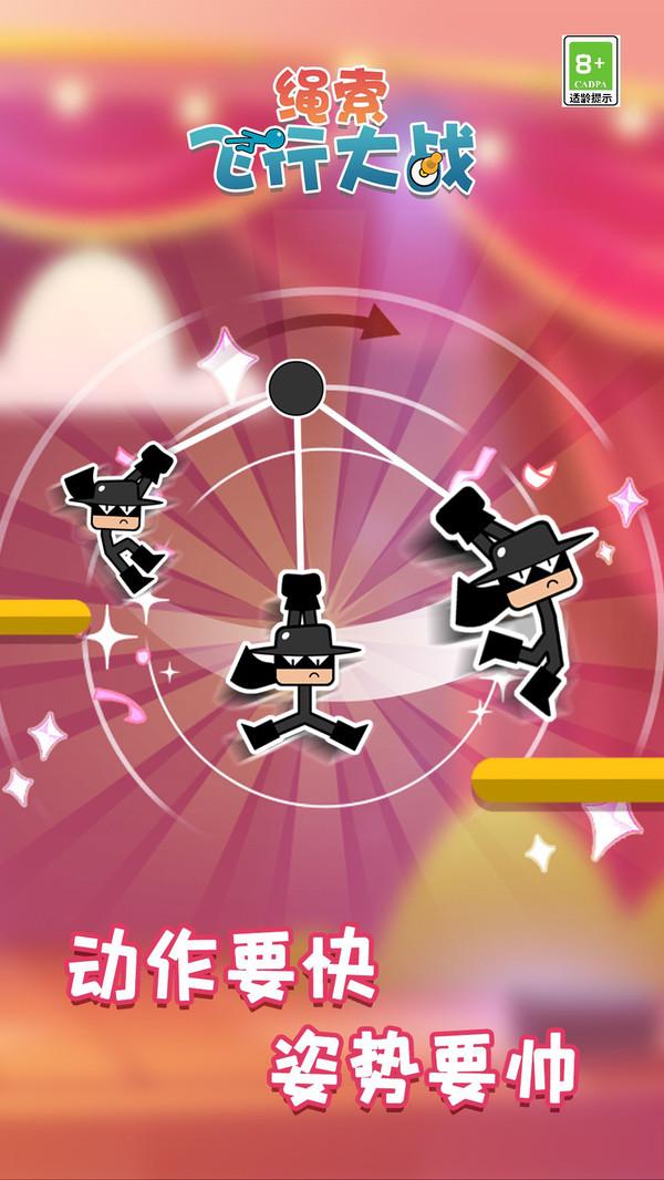 绳索飞行大战中玩家们可以体验到非常好玩的空中飞人闯关模式,多样的玩法将会带来各种独特的体验,你需要控制你的角色不断地在关卡中进行不断的跳跃从而闯关成功,闯关成功之后还能解锁新的挑战。
