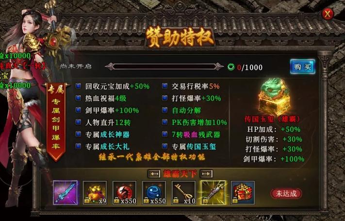 锻造系统,自行打造各种装备,只要收款材料就行,变态版传奇锻造成功率百分百。