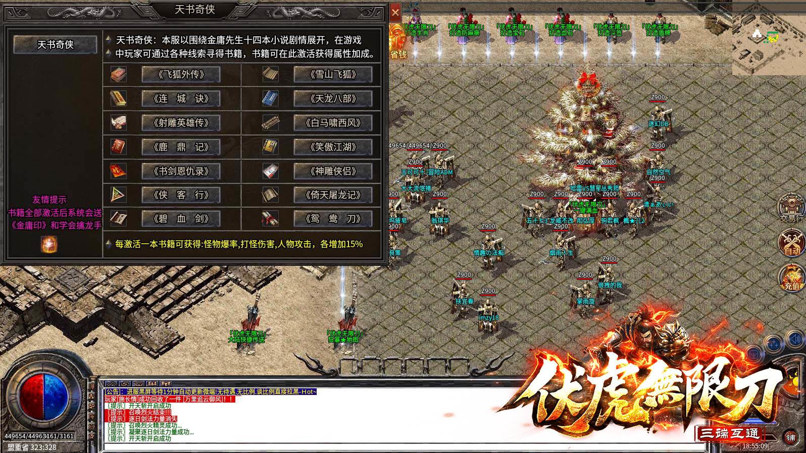 4、我们还增加了卧龙山庄、勇闯天关、BOSS悬赏、皇陵秘境、夺宝奇兵等多种创新玩法。