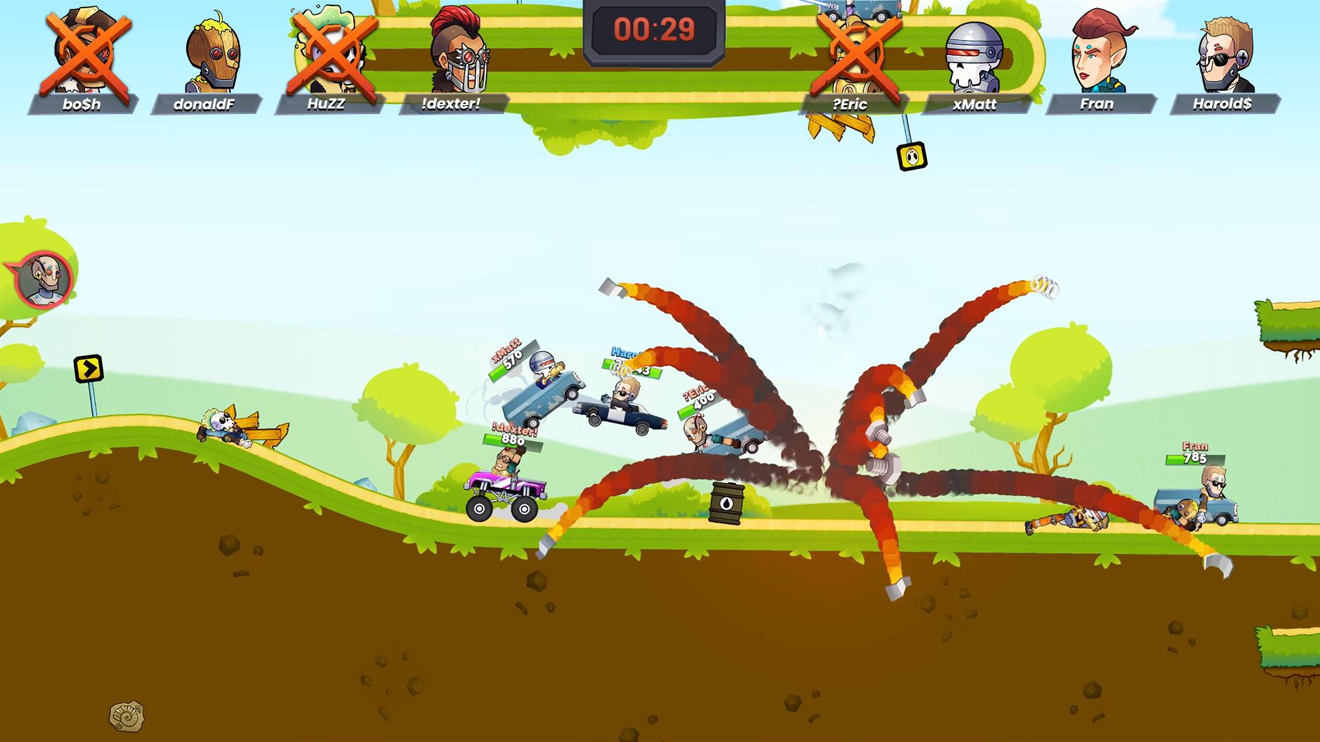 解锁并升级有趣的新车、强大的武器和有用的物品,以便扭转战局