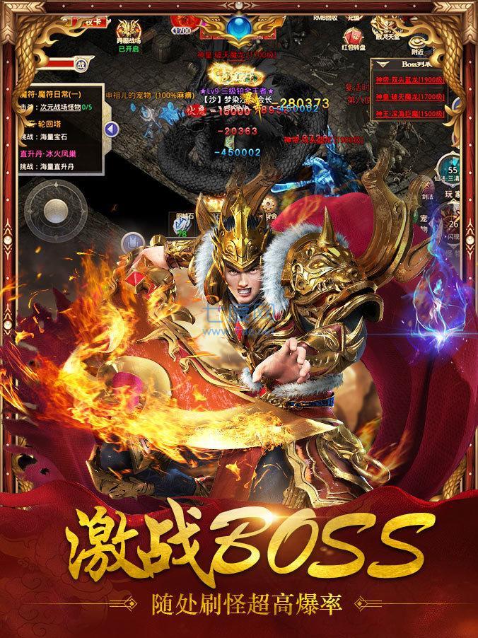 4、整体玩法需要通过击杀BOSS打金来获得红包一步一步的提升自己,进入高级地图击杀BOSS获取高级装备,一步一个脚印稳步提升实力,最后就是无尽的激情PK!