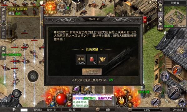 2.沙城血战,千人同屏,畅爽战斗一触即发,呼朋唤友组队挑战BOSS,神装道具等你拿,还能自由交易换元宝。