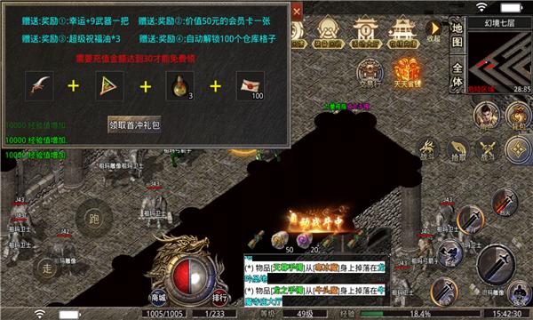 3、和兄弟们一起沙城重聚,路边小怪和强力boss都有极品装备爆出。