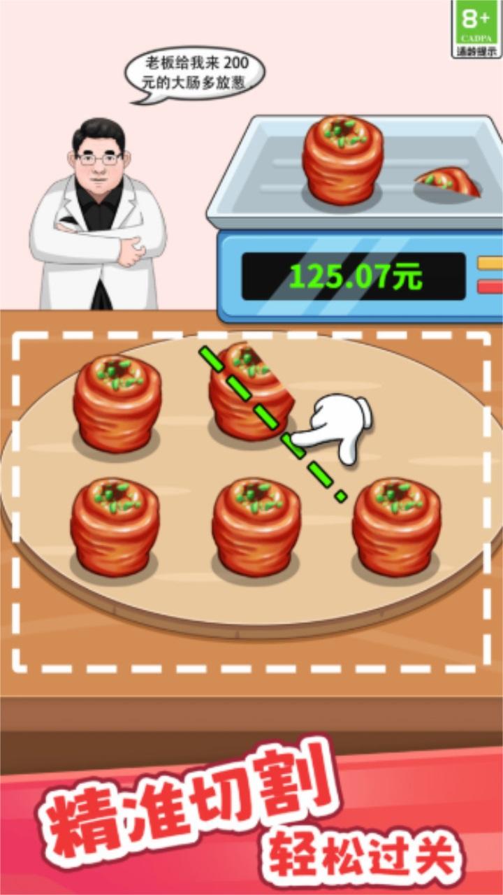 一款以切割各种食物为背景的免费模拟经营休闲解压游戏,玩家在游戏内扮演切割高手,将各种食物进行切割,为前来购买的客户提供切割、称重等服务。该游戏将会考验你的逆向思维,打破常规意识束缚,快叫上你的朋友们一起来体验吧!