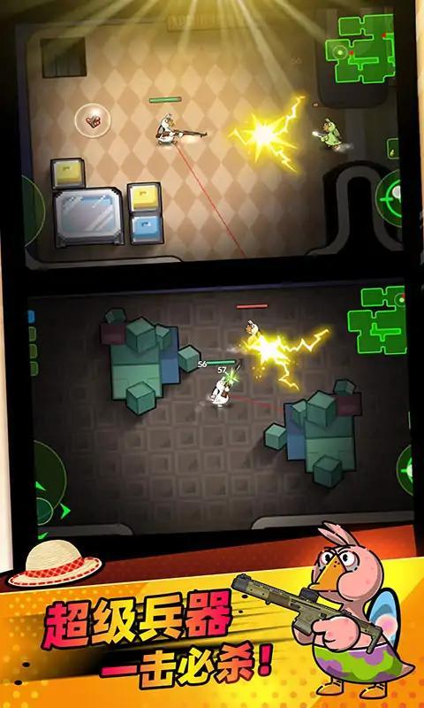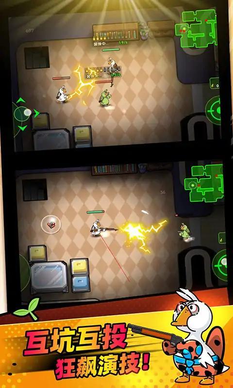 一款大乱斗类型的游戏,游戏中玩家扮演鸭子或者鹅在太空船上厮杀战斗。