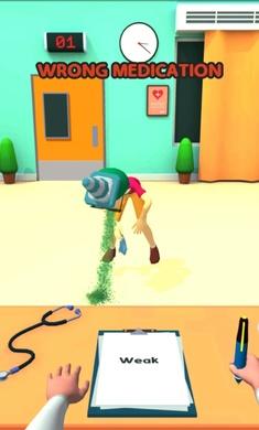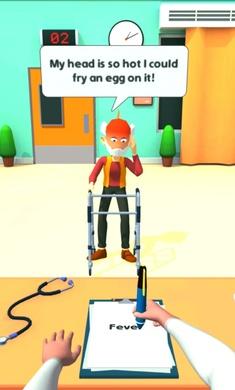 《药丸医生》是一款模拟医生看病的休闲小游戏,游戏中你将以第一人称视角当一名医生来问诊病人们,进来的病人会有各种各样的病情,你需要根据他们的表现和反应推断出生了什么病,再为他们开取相应药品。