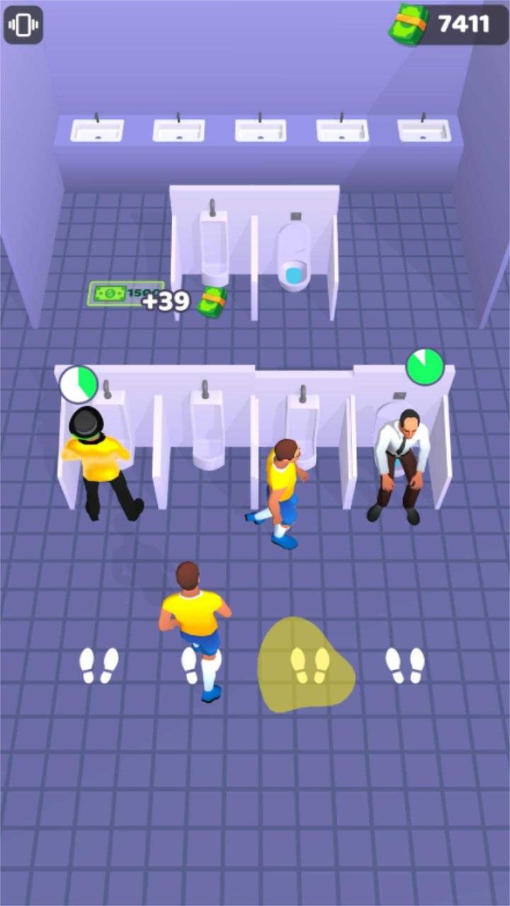 厕所生活是一款解压游戏,我们在参与游戏的时候,及时增加厕所的位置,避免因厕所位置不够导致顾客憋尿或者尿裤子,意外的情况会发生,我们需要及时的安排工人来打扫卫生,保证厕所的干净卫生,通过完成游戏的任务来获取金钱,等待一定程度,就可以用金钱来升级自己的厕所设施设备。