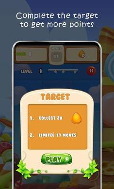 《糖果英雄》是一款非常适合打发无聊时光的益智游戏,游戏采用了非常经典的三消玩法,玩家可以通过移动位置将相同的糖果连成一条线,糖果就会疯狂掉落,游戏内拥有苏打糖、果冻、蛋奶酥、软糖等等不同的糖果。