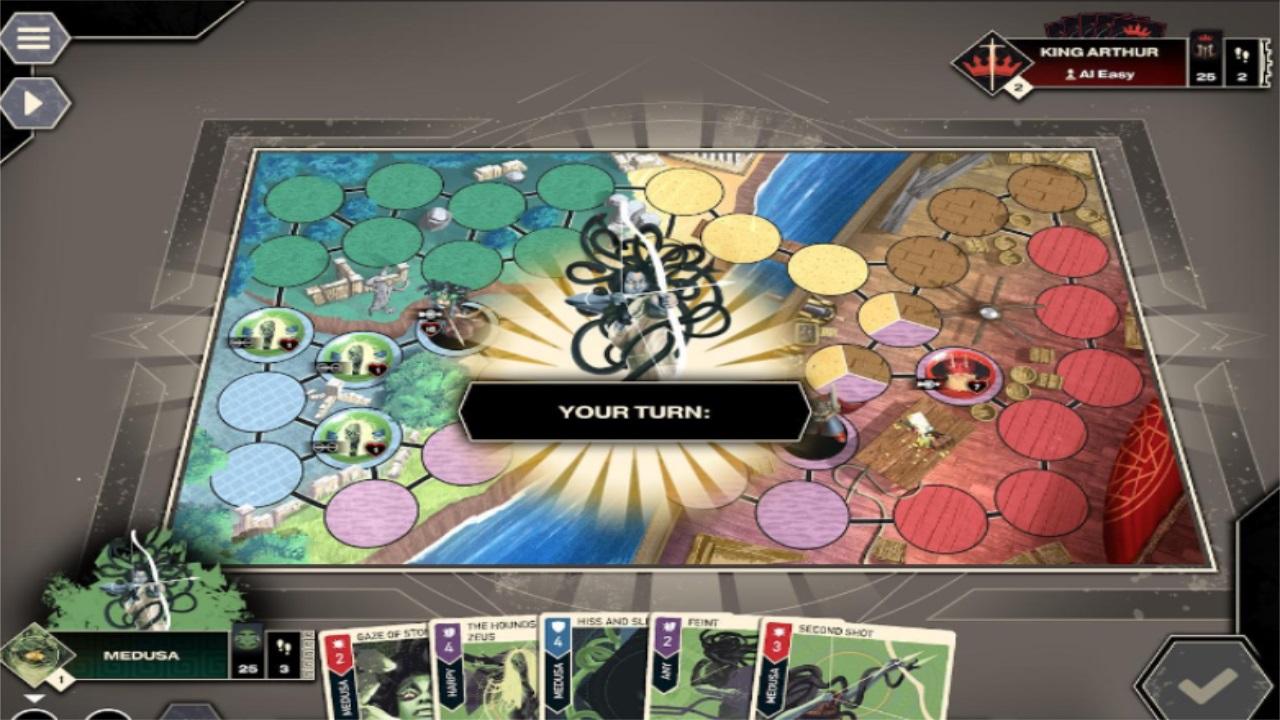 这款游戏的特别之处在于,每个英雄都有独特的牌组和能力。爱丽丝可变大变小。亚瑟王可以弃一张牌来增强其攻击。辛巴达随着航行次数的增加会变得越来越强大。美杜莎只需一瞥就能毁了你。