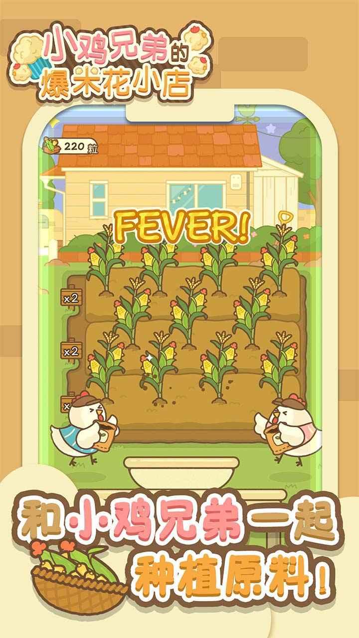 小鸡兄弟的爆米花店铺开张啦,游戏已经有无限的金币了哦,在这里玩家要帮助可爱的小鸡兄弟经营爆米花店,掌握好爆米花的火候,制作各种美味的爆米花,售卖给前来光临的顾客,游戏中还需要种植玉米获取爆米花材料哦。