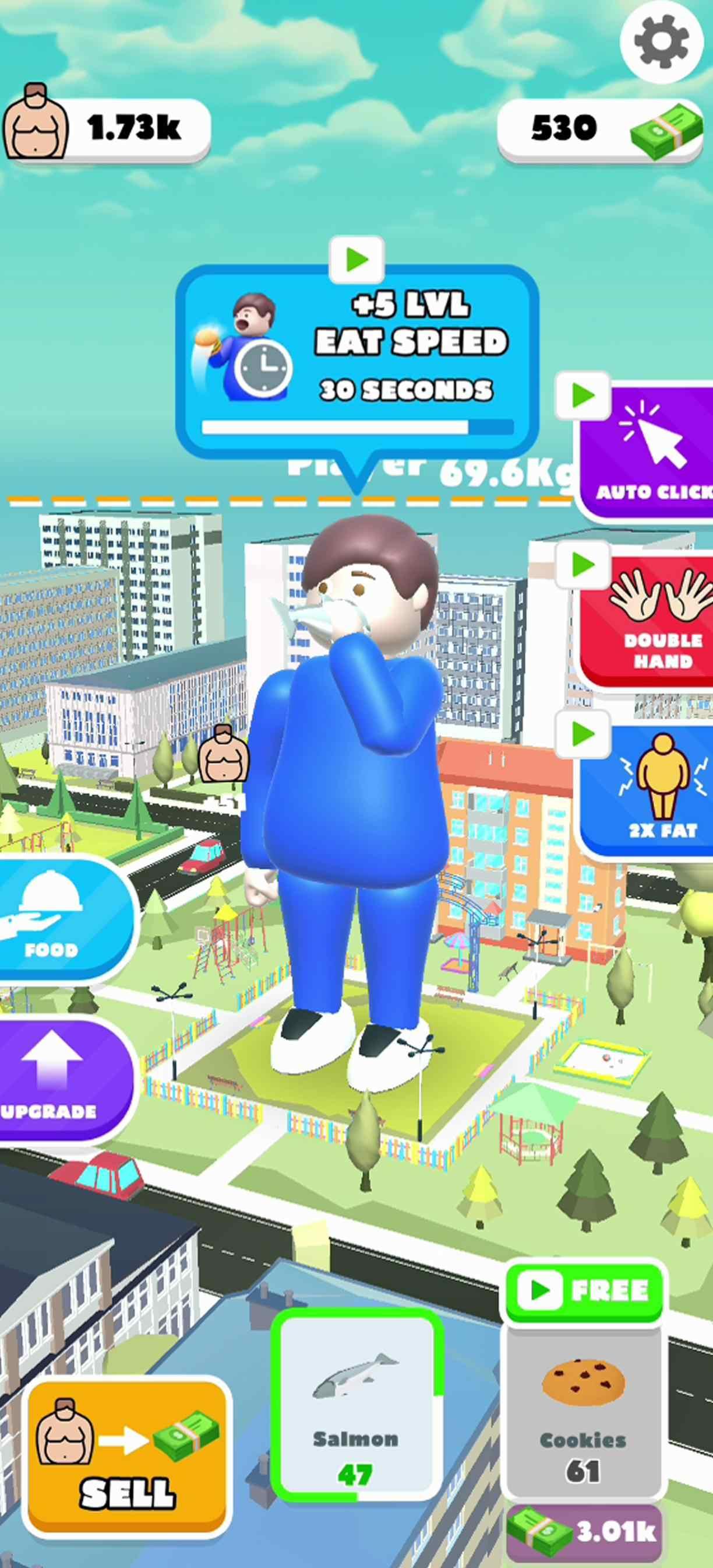 《吃货英雄ASMR》是一款非常减压的休闲小游戏,你要做的很简单,就是不停点击屏幕帮助屏幕中的小人吃更多东西,吃得越多块头就会越大,当体重足够时就可以出售重量赚取积分,是一款可以不停进食的小游戏。