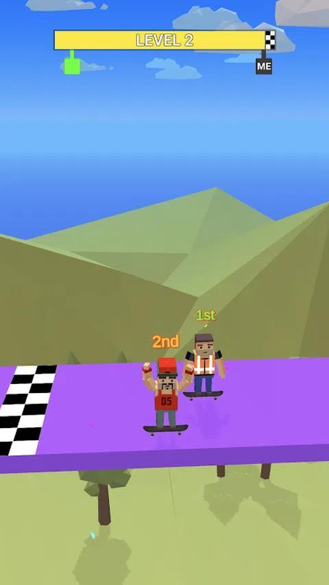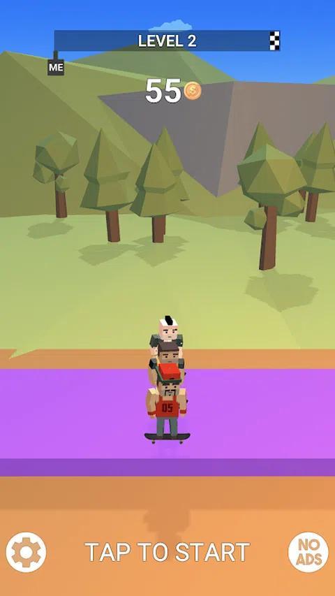 《Skate Guys滑板游戏》是一款非常容易让人上瘾的休闲小游戏,游戏操作方法非常简单,你只需要用一根手指点击即可,每一场比赛都会有两名其他滑板手与你较量,保持平衡,看看谁才是最厉害的滑板手吧。
