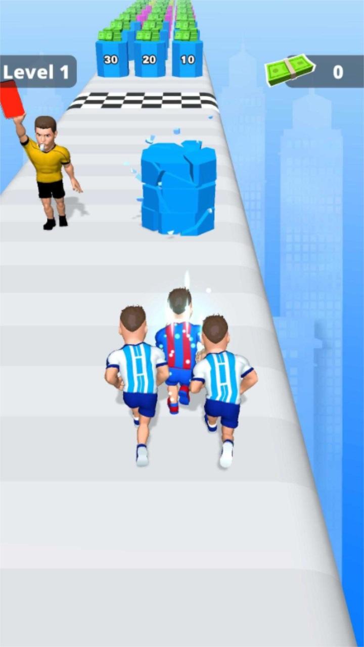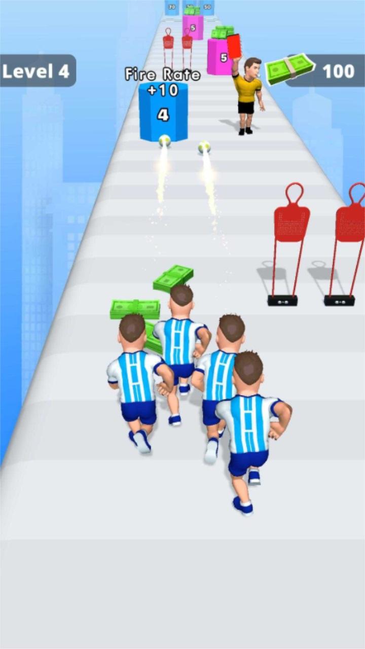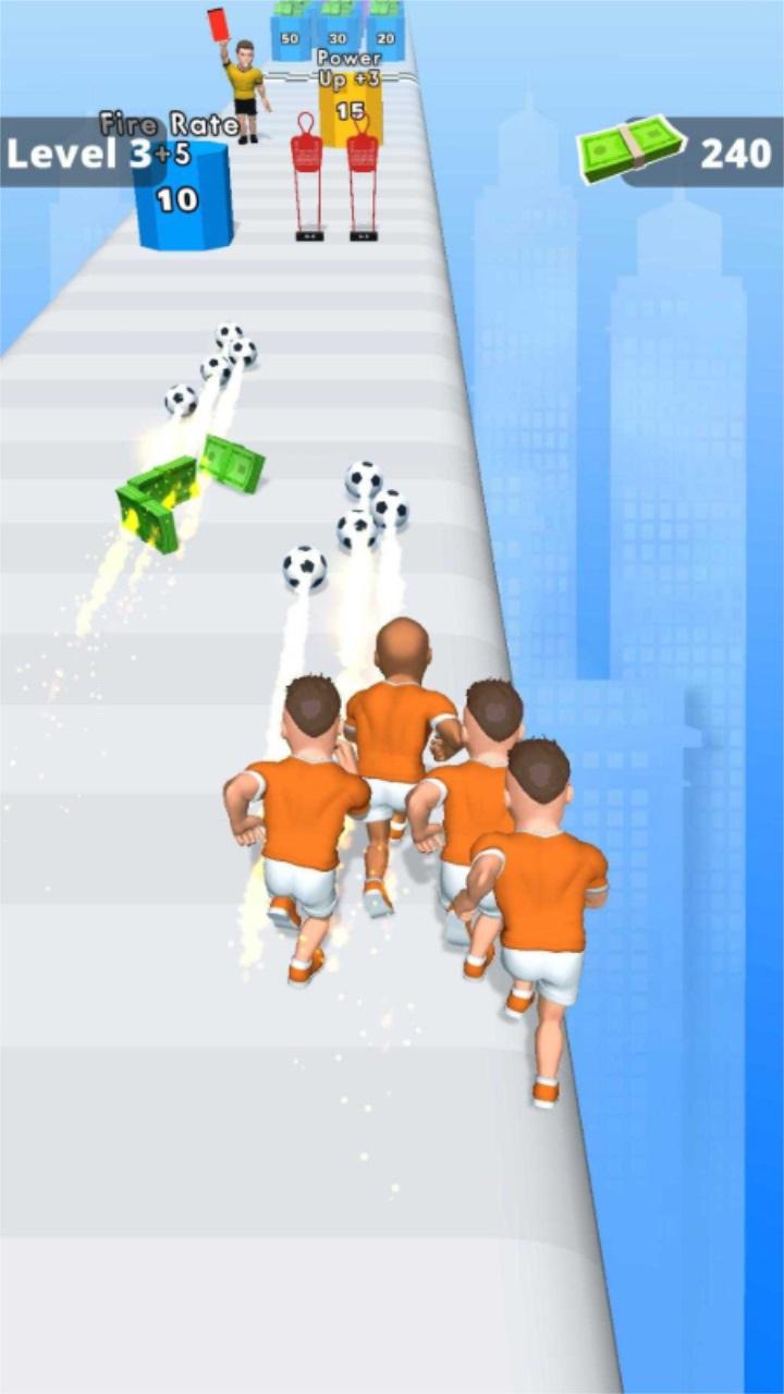 4、超级牛逼第一人称射击操作令所有人都能上瘾,令人敬畏的游戏环境震撼你的眼睛。开始奔跑和带球,用球射击障碍物,并在途中收集其他足球明星,发展团队并赚取更多的钱。 升级您的技能,成为一名更好的足球运动员。当心障碍物和裁判!