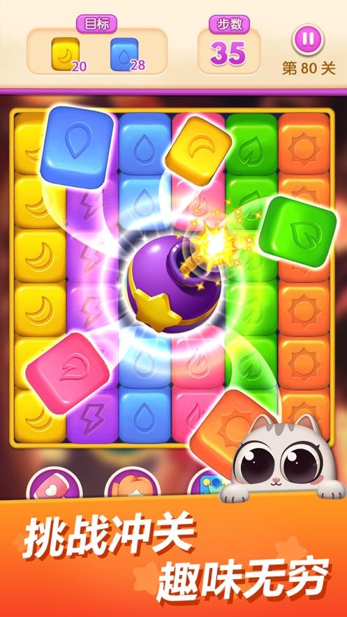 欢乐爆破是一款非常不错的休闲类消除小游戏,游戏延续了经典的三消玩法,操作非常简单,画面上采用了精美的卡通风格,特效炫酷无比,在这里你可以尽情享受指尖消除所带来的乐趣,快来试试吧!