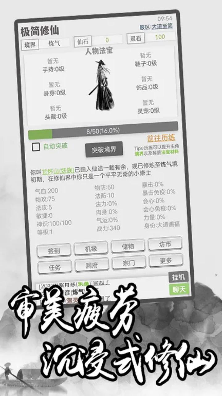 极简修仙设计了经典的mud放置修仙养成模式的元素,让你告别繁琐的操作,你只需要通过点击就能挂机获得各种不同的资源来让你的角色不断地变强,成为最强的修仙者,在这灵气复苏的时刻作为修仙者崛起。
