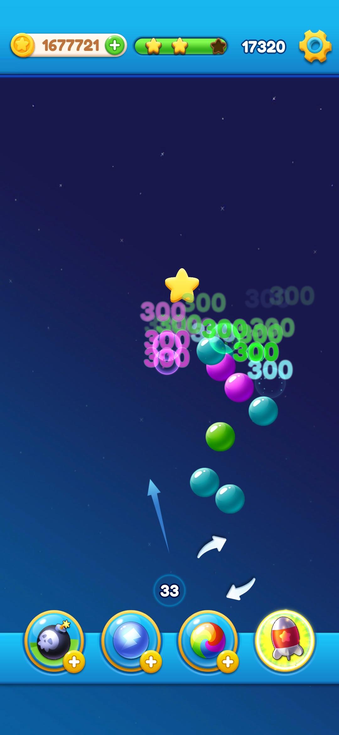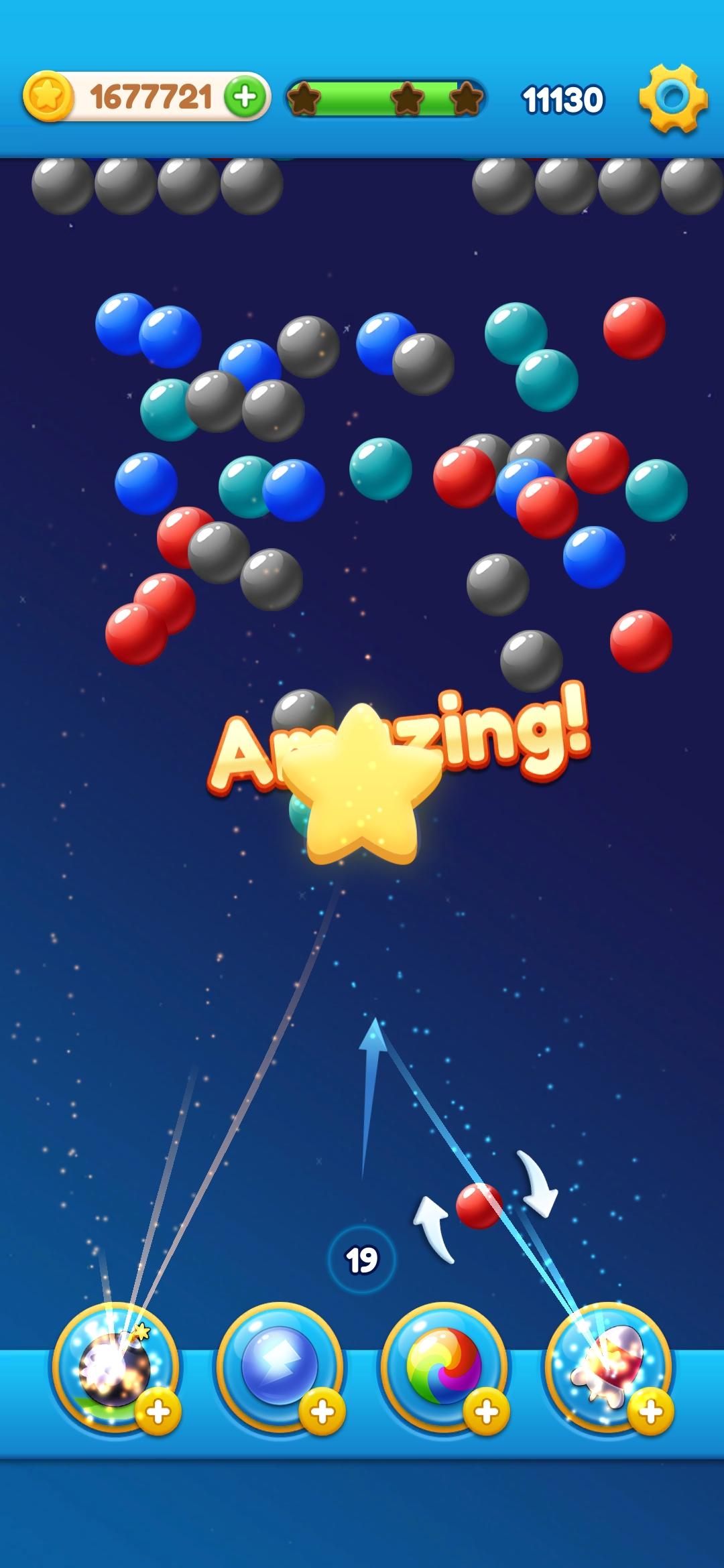 2.将所有的泡泡全部消除掉,更多的关卡等你通过,获得超多惊喜奖励。