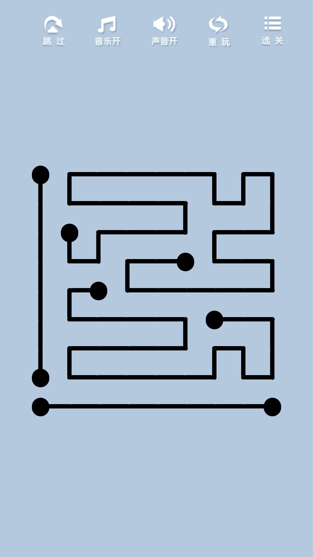 3.点和线连接必须将所有的空格占满.连线不交叉才算通关。