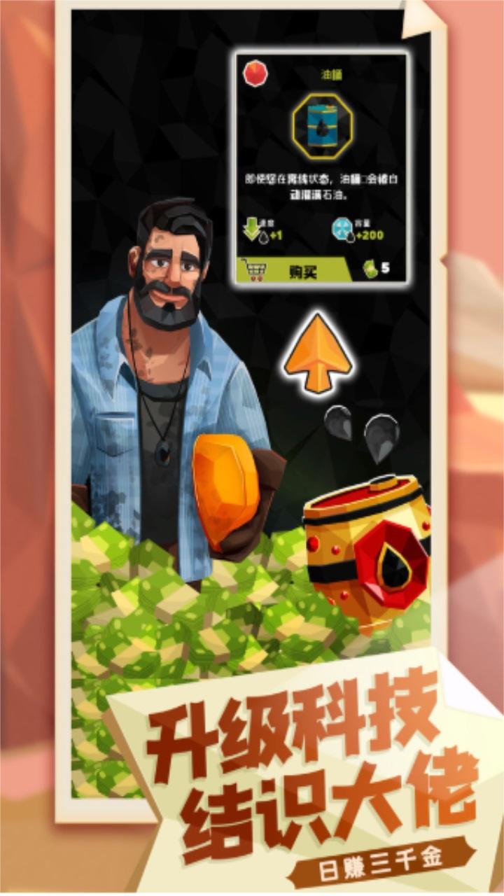 日赚三千金是一款画风简约,玩法有趣的模拟经营类手游,石油作为工业经济的命脉,其重要程度不言而喻,现在你将化身为石油大佬,通过购进新的设备开采石油,并根据交易市场上的价格变动来实现属于你个人的财富帝国。