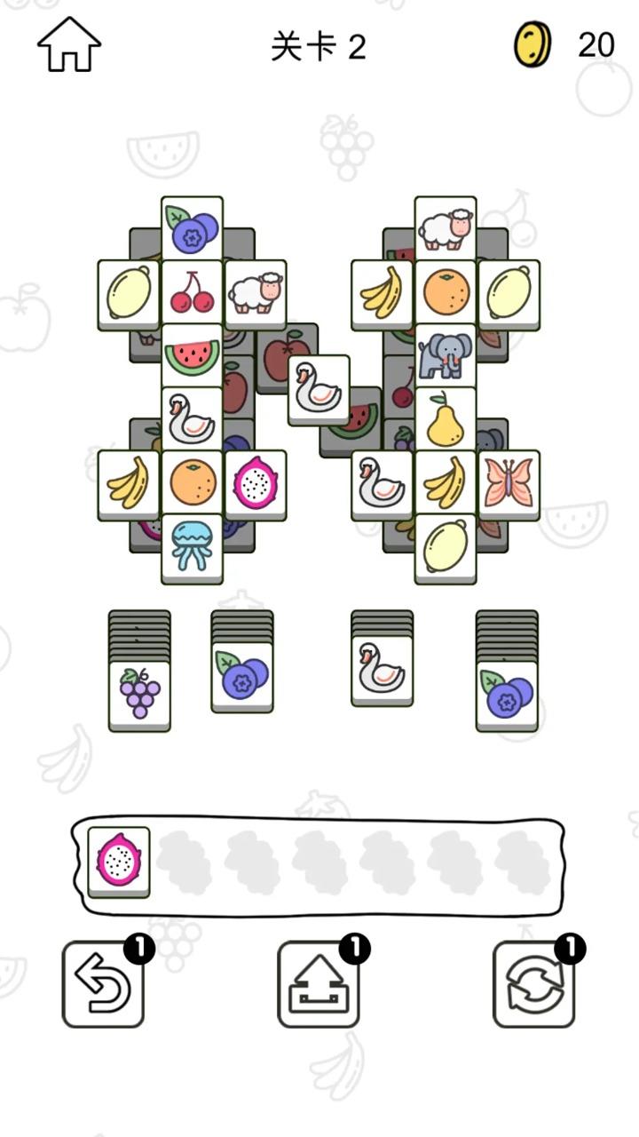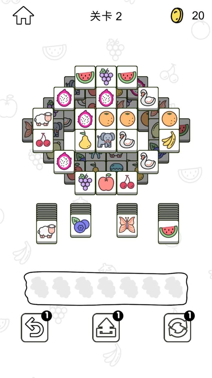 这部游戏的玩法呢,给我的感觉就是一种高难度版的开心消消乐。在游戏中玩家只需要把图案相同的三个方块,连在一起就会像消消乐那样被消除掉。刚开始的时候你会感觉到特别的简单,当然这是一个错觉,要不是因为这个错觉,恐怕这个游戏也不至于能火那么久,刚开始的时候游戏里只有简简单单的几个方块,玩家们随随便便就可以通过。然而到了第二关,基本每个新手到这里都会有片刻的迷茫和不知所措,看着那些多种多样的图案和那只能装进几个方块的格子,此时你的表情肯定不是开心的。这种感觉就像你初一考试考着考着发现考到了高一的知识一样,迷茫,不知所措是你目前唯一能做的事情了。这种前后巨大的反差,也是让这款游戏一下子就火了起来,无数的“民间高手”慕名而来,但最终都还是倒在了第二关的“无解”诅咒之下。