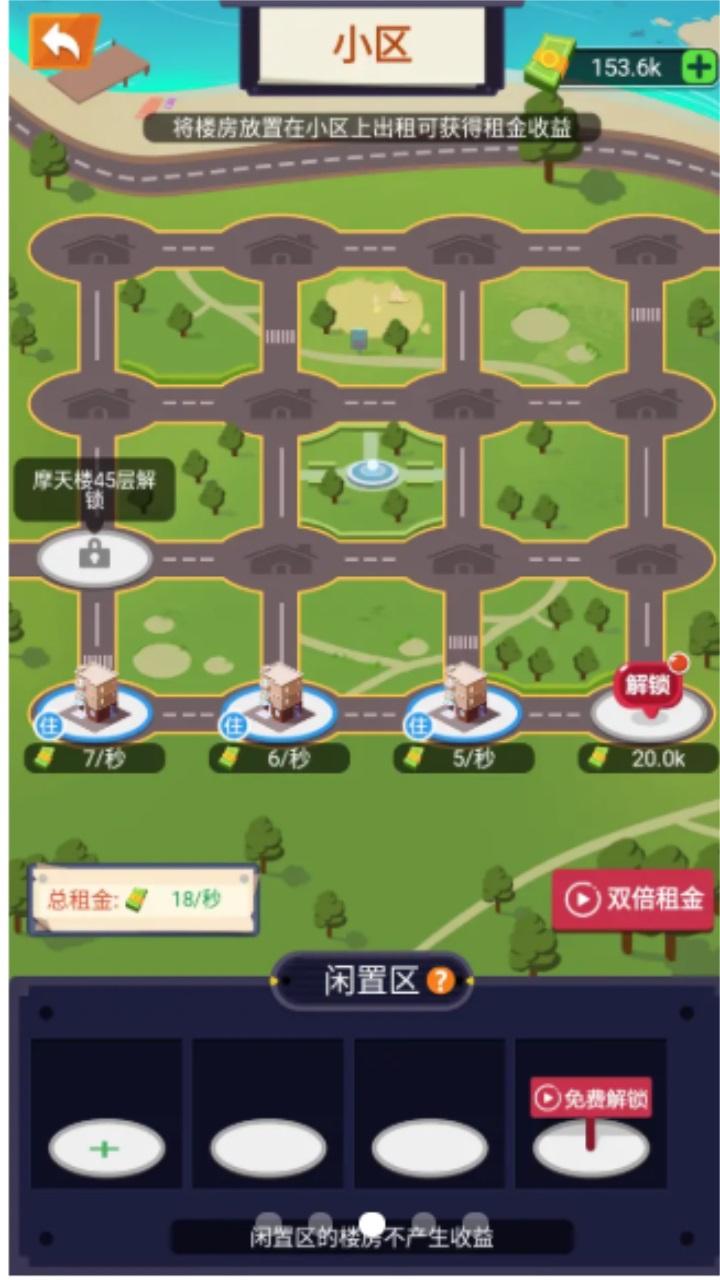 1、休闲模拟养成类的动作小游戏,玩家通过搭建楼层,建造各式各样的楼房进行出售或出租来赚取金钱。