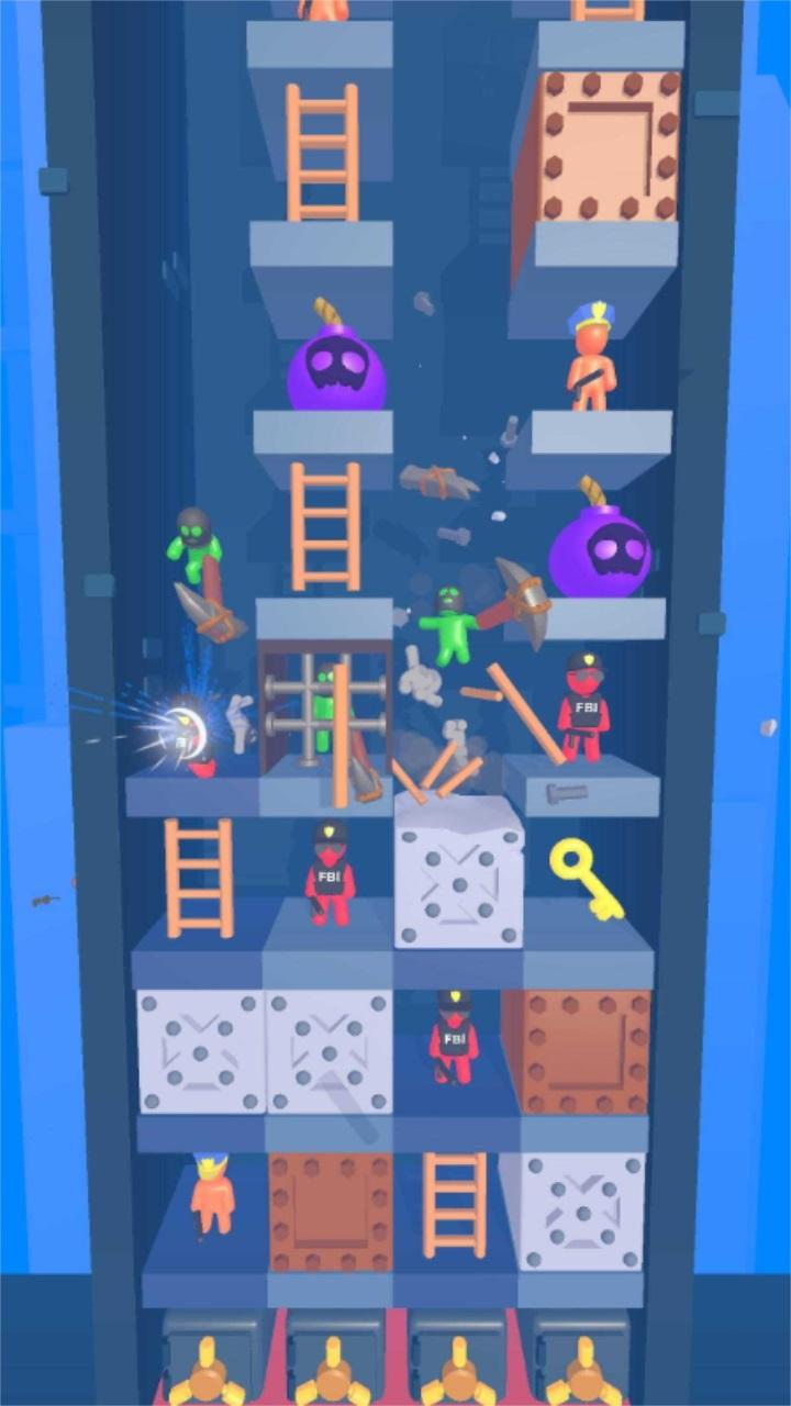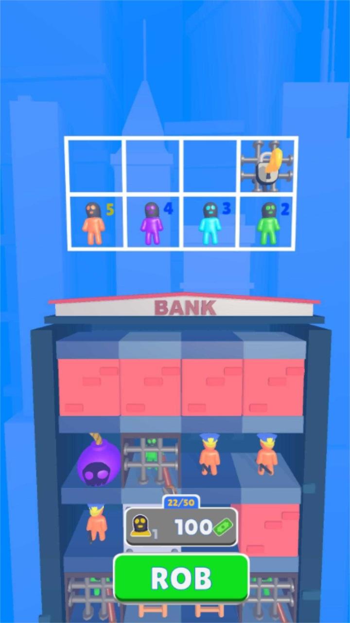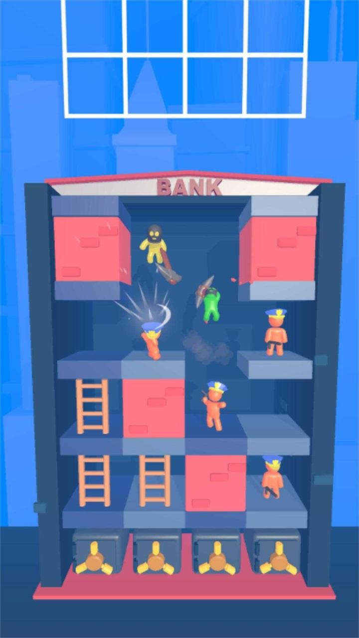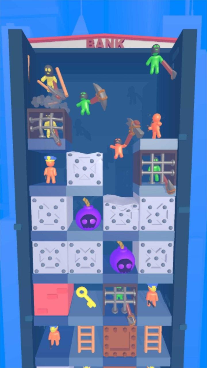 1、《合并盗贼》游戏中,玩家可以实现上帝之手来创建你心中的世界。创建最佳的小偷团队,通过抢,劫银行致富! 通过安全措施并破解保险箱,或将银行砸成碎片!