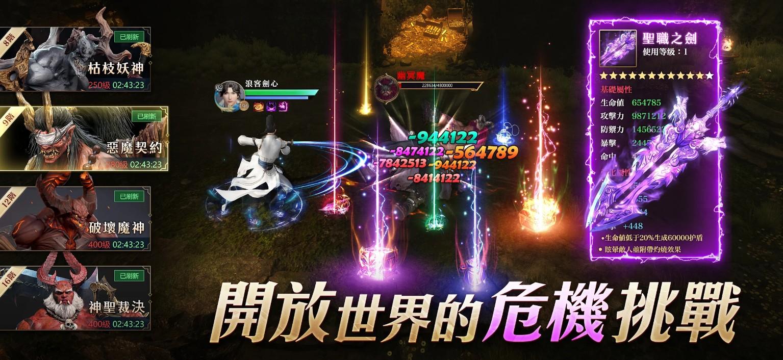 全服资源争夺,角逐万门之巅!副本开放仙盟战、门派战、帮派战、神仙道等多种团战玩法!还有野外红名、竞技PK、宠物合战、装备强化等多元打造沉浸式战斗体验,新笑傲江湖世界之巅!