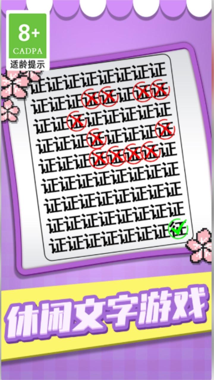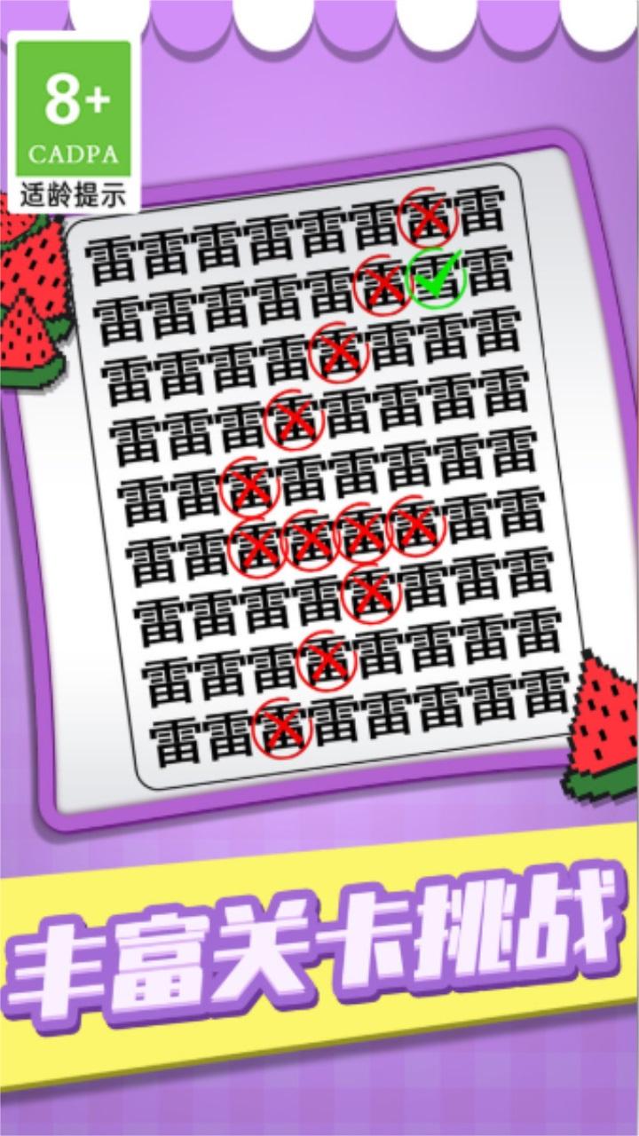 2、玩家开始游戏后,会出现一组文字或图片,其中会有一个与其他不同。
