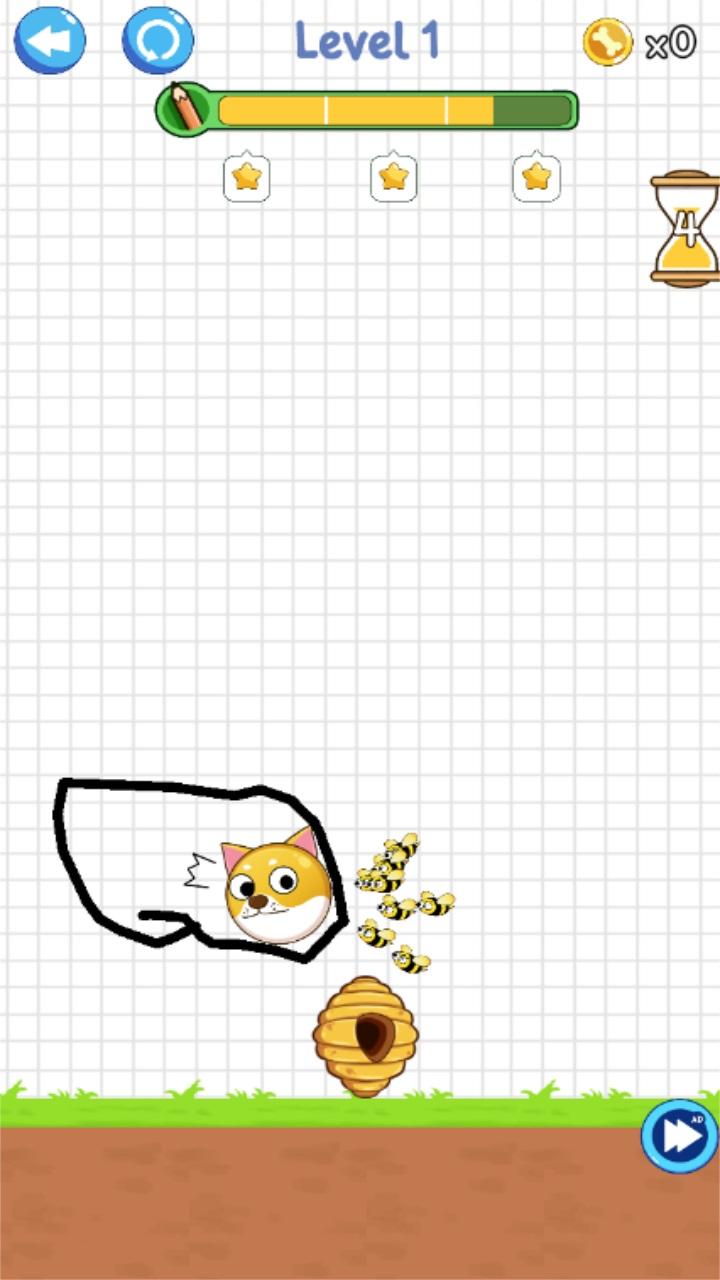 画一条线,把你的小狗从蜜蜂手中救出来,这很有挑战性吗?在有趣且令人上瘾的脑筋急转弯游戏“狗救援”中,你必须使用你的徒手绘画技巧从一群蜜蜂中拯救一只狗。