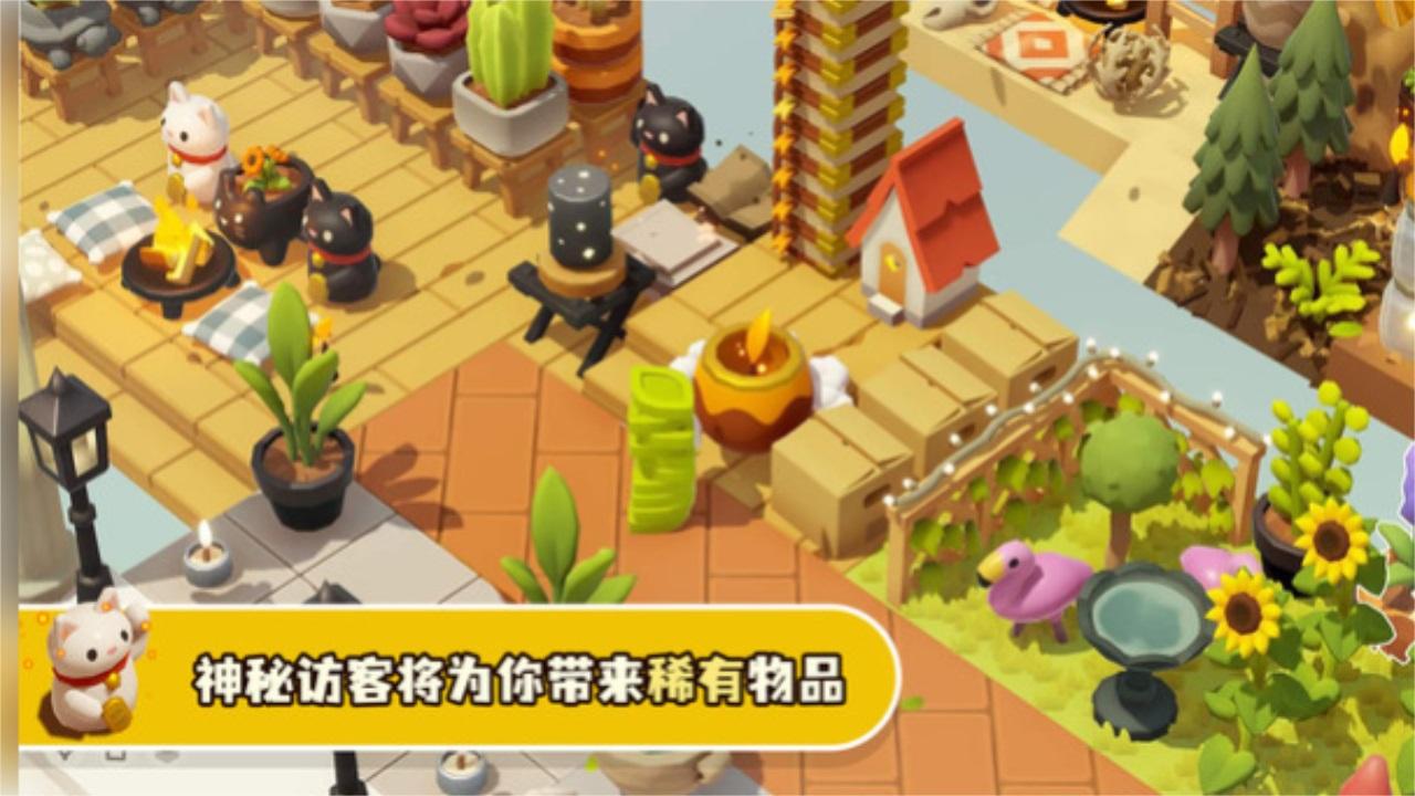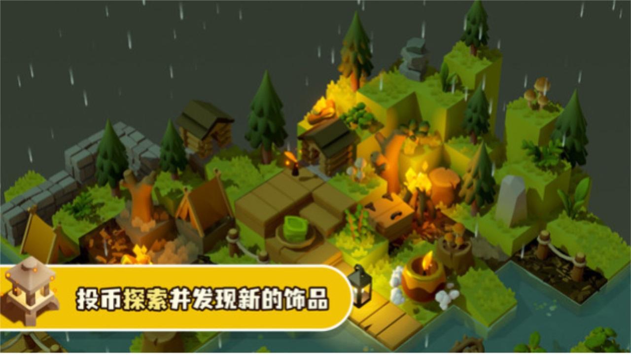 2、大量的物体供玩家自由地方式,解锁各种装饰物体和建筑地表。一堆跳动的小精灵,点击他们会给你硬币,把硬币投入到许愿盒中,就会随机给你一样东西。