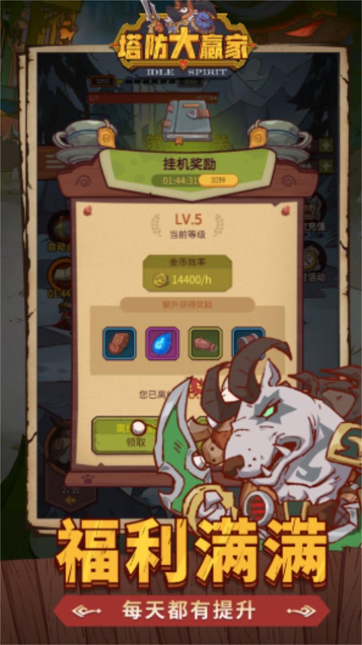 塔防大赢家是上海力旭网络科技有限公司打造的一款策略手游,咸鱼翻身,今非昔比!福利满满,每天都有提升,荒诞画风,独特魔兽冒险之旅,休闲放置的手游,轻松收集获取奖励,无损重生,灵活切换阵营,收集狗头,独闯魔兽大陆。挂机,战斗,搞怪!这是一款新奇画风的休闲放置挂机游戏!