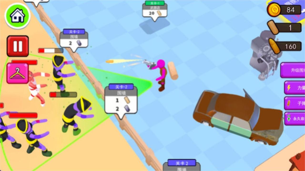 移动主角来消灭讨厌的丧尸,解锁最终物品“汽油”,将得到的汽油给汽车加满油逃离这个可怕的地方即可过关。