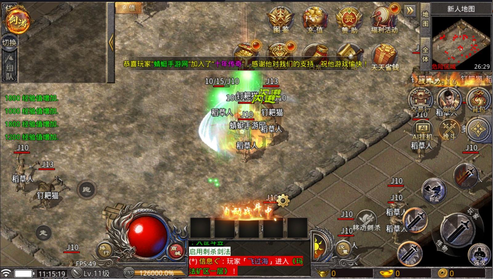 1.玩家可以自由选择不同的职业角色,如士兵、法师和道士;