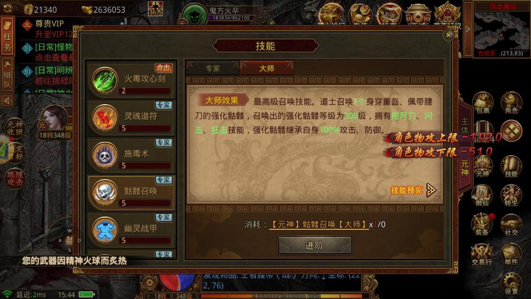 装备方面自然无需多言,游戏中地图一般同一级别有三张地图。地图中怪的强度也是按照顺序递增,升级打宝只要在三张图中第一张就行了,打怪越快效率越高。打怪掉落技能经验丹、转生石这类材料用来升级英雄和元神的技能等级和自身等级!这里要注意一点:优先升级有百分比伤害、减防御效果的技能。拿战道组合举例比如施毒术、合击技能、骷髅召唤、破盾斩等。