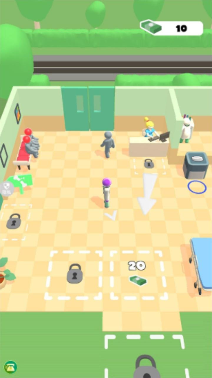 游戏模式简单易上手,玩家随时收集金币,打造自己喜欢的一种公共手段;各类百宝箱随机奖励,战略规划医院规模,开设全球最豪华医院。
