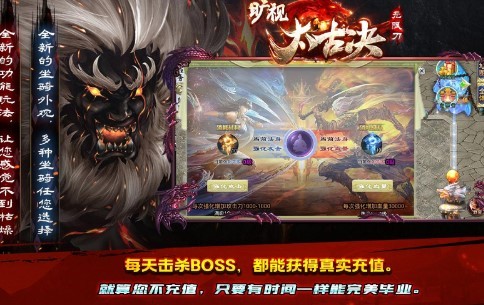 旷视太古决神器传奇,全新的传奇功能玩法,不会让玩家感到枯燥,每天登陆轻松击杀boss野怪都有对应的游戏奖励,非常完美的游戏感受和体验,轻松竞技感受,线上线下活动轻松体验,传奇打斗场面非常热血刺激,刀刀轻松爆资源,稀有的武器和传奇地点,各色新鲜元素需要解锁才能尝试,非常值得去尝试的传奇竞技类游戏。