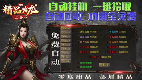 1:自动挂机,自动回收,范围拾取,上线免费送送送;