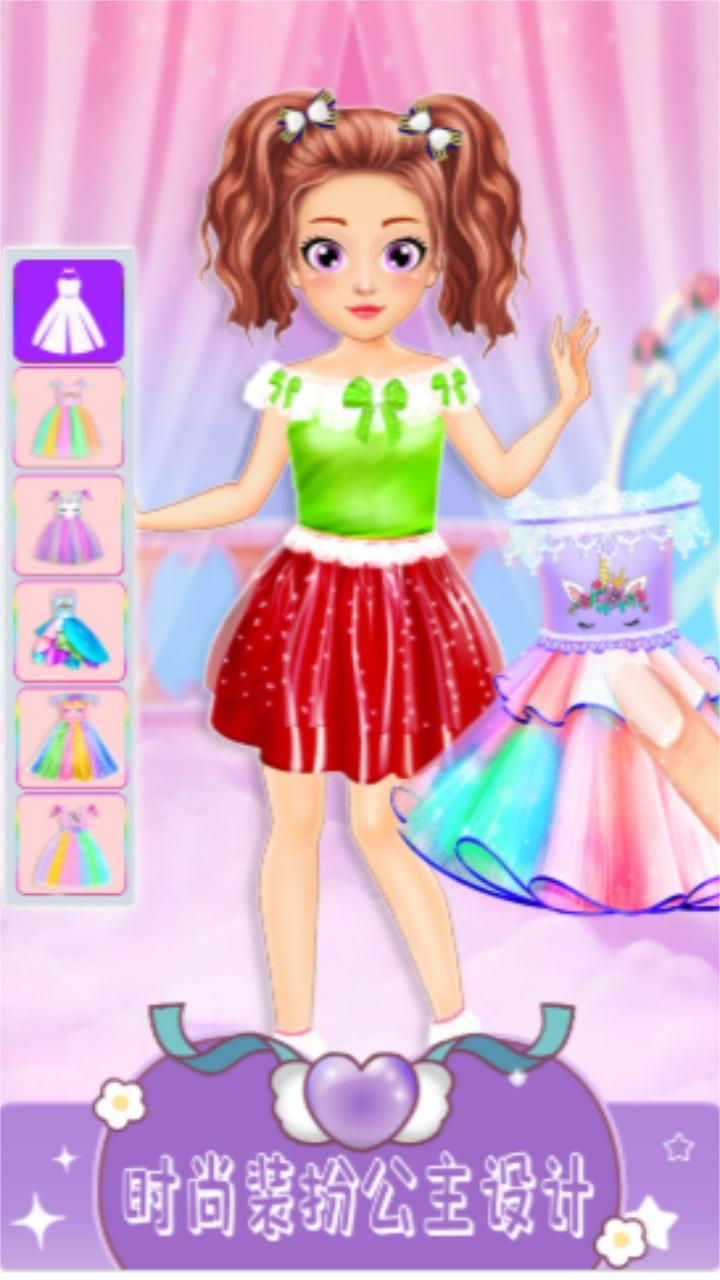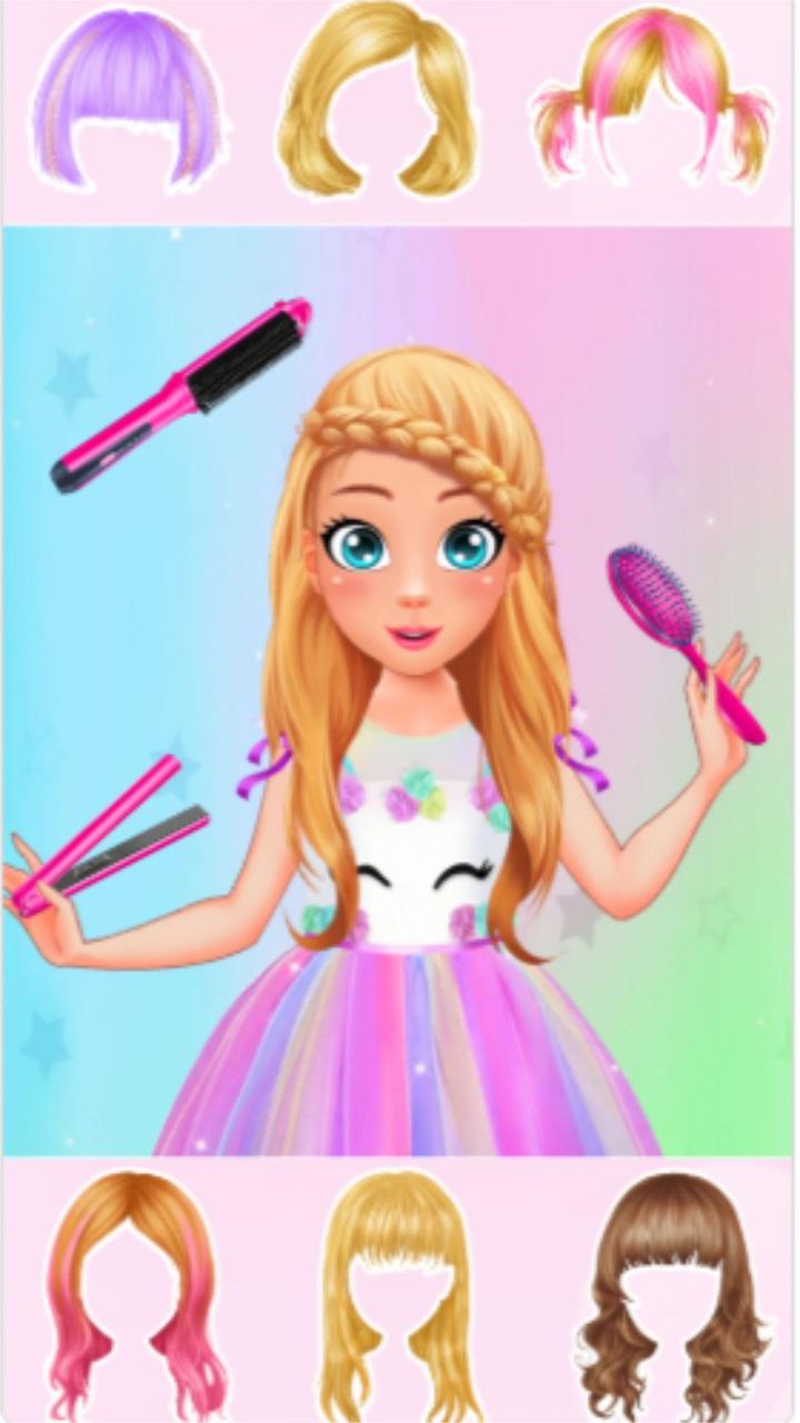 4、让我们为漂亮的女孩设计漂亮的彩虹独角兽装扮!选择您想要装扮的角色,设计时尚漂亮妆容,修剪潮流发型,挑选彩虹服装套装,用闪亮饰品搭配。